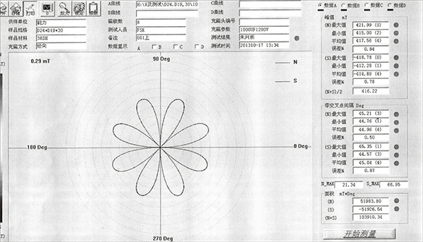徑向多極輻射取向磁環(huán)是慈溪市能力磁材有限公司通過(guò)創(chuàng)造,特別開發(fā)的磁體。現(xiàn)正申請(qǐng)技術(shù)發(fā)明專利。該產(chǎn)品同磁瓦拼相比:提高表磁,分布一致性<1%,減少幾何中心和重心偏差,提升表磁30%,同時(shí)提高耐溫一個(gè)等級(jí)。為低震動(dòng),低噪音,低高次潛波電機(jī)的設(shè)計(jì)和應(yīng)用奠定了基礎(chǔ)。